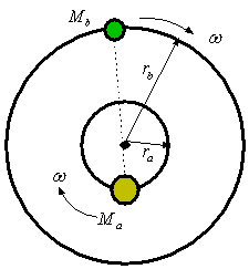 ![]() 双星的两颗子星以质心为参考点的运动轨道 |