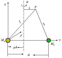 视两星为质点,则两星的引力势能与转动坐标系中离心势能之和为