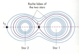 通过点的称为外临界等势面,它决定了围绕两星的公共包层的最大形状和界限。外拉格朗日点