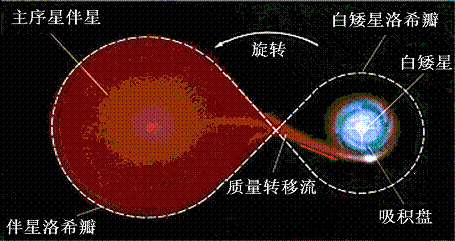 发出各种辐射 ③如果吸积的物质(主要是氢)很多,能产生不稳定性,使得白矮星继续点火燃烧,半径增大到巨星量级,甚至出现超新星爆发